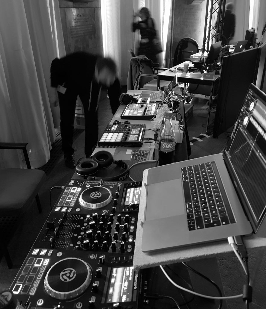 The concept was very different from the 2019 installation – we were asked to do “DJ-ing” during the “Hebocon”, which is a fight event between various robots and one of the main acts of the SciFi-Festival. I never did something like this before, my primary focus has been composing orchestral music.